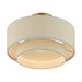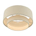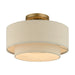 The Gladstone semi-flush is both modern and versatile. The hand-crafted ash gray colored fabric hardback shade sets a pleasant mood. The one-light double drum shade adds character to this handsome style. This sleek design is shown in an antique gold leaf finish.