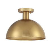 This 1-light ceiling light showcases a curving vintage-inspired shade that is finished in a stylish natural brass. 9" height, 12" width. Uses standard size bulb, max 60 watts. LED bulb compatible.