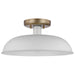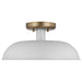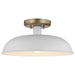 Designed with neutral, clean lines, the Colony small semi-flush is ideal for an eat-in kitchen, entryway, hallway and even a bedroom. The loft-style shallow pan metal shade is finished in matte white, with a matching interior to reflect the downfacing lamp. The burnished brass finish on the canopy adds an elegant touch to this flexible design.
