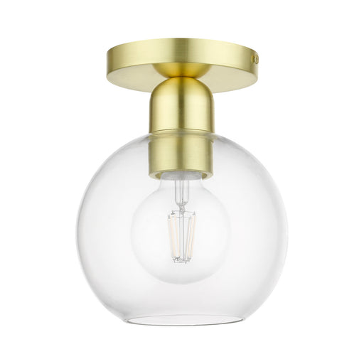Bring a refined lighting style to your interior with this downtown collection single light semi flush. Shown in a satin brass finish with clear sph...