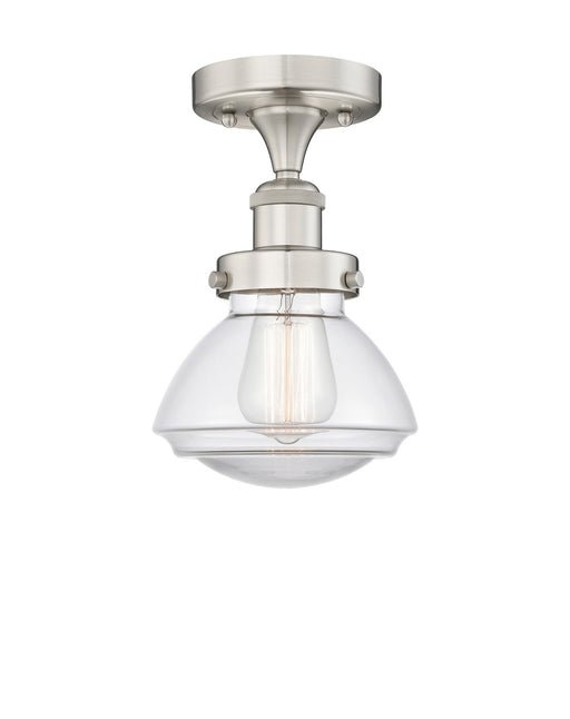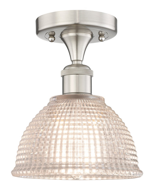 Colton - 1 Light - 6 inch - Brushed Satin Nickel - Clear Halophane Shade - Semi-Flush MountDetails:Product Type: Glass DownFinish: Brushed Satin Ni...