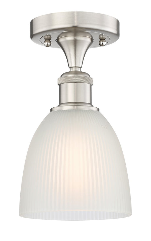 Dover - 1 Light - 5 inch - Brushed Satin Nickel - Matte White Shade - Semi-Flush MountDetails:Product Type: Glass DownFinish: Brushed Satin NickelS...
