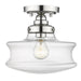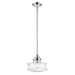 Schoolhouse design. Use as a ceiling mount or a pendant. Polished Nickel finish is easy to mix and match with other hardware. As a pendant, use multiples for extra impact.