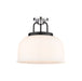 Kahana Collection semi-flush mounts are a transitional design in popular dual finish combinations. The large, flared dome shaped glass shade is suspended from a finely detailed black metal frame and contrasting metal finish canopy.