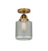 Stanton - 1 Light - 6 inch - Brushed Brass - Clear Wire Mesh Shade - Semi-Flush Mount