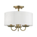 Livex Lighting 42987-01 Three Light Semi-Flush Mount, Antique Brass