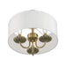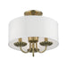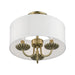 The three-light Brookdale semi-flush combines floral details and casual elements to create an updated look. The hand-crafted off-white fabric hardback drum shade is set off by an inner silky white fabric that combines with chandelier-like antique brass finish sweeping arms which creates a versatile effect. Perfect fit for the living room, dining room, kitchen or bedroom.