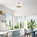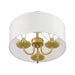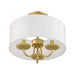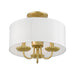 The three-light Brookdale semi-flush combines floral details and casual elements to create an updated look. The hand-crafted off-white fabric hardback drum shade is set off by an inner silky white fabric that combines with chandelier-like soft gold finish sweeping arms which creates a versatile effect. Perfect fit for the living room, dining room, kitchen or bedroom.