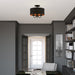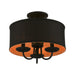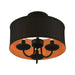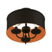The three-light Winchester semi-flush combines floral details and casual elements to create an updated look. The hand-crafted black fabric hardback drum shade is set off by an inner silky orange fabric that combines with chandelier-like black finish sweeping arms which creates a versatile effect. Perfect fit for the living room, dining room, kitchen or bedroom.