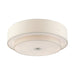 The Meridian collection has a clean, crisp look and contemporary appeal. The hand-crafted oatmeal colored fabric hardback shades offer a diffused warm light. This extra-large six-light double drum shade adds character to this handsomely styled semi flush mount. Will adapt well in the living room, dining room, the entrance or in the bedroom tastefully elevating your style. This sleek design is shown in a brushed nickel finish.