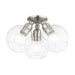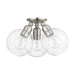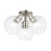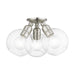 Bring a refined lighting style to your interior with this downtown collection three light semi flush. Shown in a brushed nickel finish with clear sphere glass.