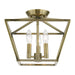 Livex Lighting 49430-01 Three Light Semi-Flush Mount, Antique Brass