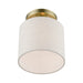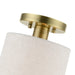 The Blossom collection is both modern and versatile. The hand-crafted fabric oatmeal colored hardback shade is set off by the silky white fabric on the inside setting a pleasant mood. The petite size single-light drum shade adds character to this handsomely styled semi flush. Perfect fit for the hallway, bathroom, kitchen and a small bedroom. This sleek design is shown in an antique brass finish.