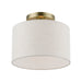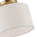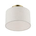 The Blossom collection is both modern and versatile. The hand-crafted fabric oatmeal colored hardback shade is set off by the silky white fabric on the inside setting a pleasant mood. The small size single-light drum shade adds character to this handsomely styled semi flush. Perfect fit for the hallway, bathroom, kitchen and a small bedroom. This sleek design is shown in an antique brass finish.