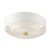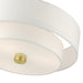 The Meridian collection has a clean, crisp look and contemporary appeal. The hand-crafted off-white fabric hardback shades offer a diffused warm light. This large three-light double drum shade adds character to this handsomely styled semi flush mount. Will adapt well in the living room, dining room, front entrance and bedroom tastefully elevating your style. This sleek design is shown in a satin brass finish.