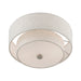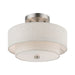The sleek style and simple design of this semi flush mount, makes it easy to use in any space. This 2 light fixture features an oatmeal fabric hardback drum shade with a satin white acrylic diffuser.