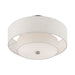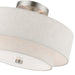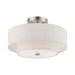The sleek style and simple design of this semi flush mount, makes it easy to use in any space. This 2 light fixture features an oatmeal fabric hardback drum shade with a satin white acrylic diffuser.