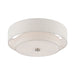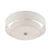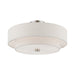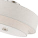 The sleek style and simple design of this semi flush mount, makes it easy to use in any space. This 4 light fixture features an oatmeal fabric hardback drum shade with a satin white acrylic diffuser.