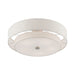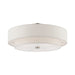 A double drum shade adds character to this handsomely styled semi flush mount. Update your decor with the clean styling of this contemporary five light flush mount from the Meridian collection. Features a lovely hand crafted oatmeal fabric hardback shade and satin white acrylic diffuser for subtle illumination.