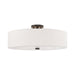 Add style to any room with this elegant semi flush mount. The design features a beautiful hand crafted oatmeal fabric hardback drum shade in a stylish English bronze.