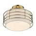 The Blanchard semi-flush mount adds refined style and a hint of mystery to your décor. The antique brass finish and an oatmeal handcrafted hardback shade create warm illumination, while soft light brings to life the intricate fretwork pattern. This small one-light semi flush mount will add a sophisticated and glamorous look to almost any interior design style. It will work great in the hallway, kitchen, bathroom or a small bedroom.