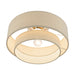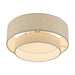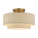 The Gladstone semi-flush is both modern and versatile. The hand-crafted ash gray colored fabric hardback shade sets a pleasant mood. The three-light double drum shade adds character to this handsome style. This sleek design is shown in an antique gold leaf finish.