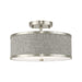 Update your decor with this sleek semi flush mount design. The shaded frame comes in a bushed nickel finish which nicely complements the hand crafted gray fabric hardback shade.