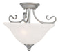 Classic brushed nickel two light semi flush mount paired with white alabaster glass. Timeless in its vintage appeal, this light is stylish for both new and restored homes.