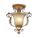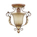 The Villa Verona collection of interior lighting features handsomely styled ironwork complete with scrolling details. This semi flush mount features a Verona bronze finish with aged gold leaf accents and rustic art glass. Display casual, traditional style with this beautiful fixture.