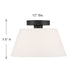 Use this 1-light ceiling semi-flush mount to freshen up any room. The elegant white linen shade provides a crisp and classic look that works beautifully with any decor and style. The Matte Black finish is wonderfully versatile. 7.5" height, 12" width. Uses 1 standard size bulb of up to 60 watts. Bulb not included.