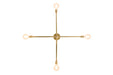 A striking crossbar design brilliantly illuminates with minimalist styling and industrial flair. The Brass frame with a Brushed finished fixture illuminates with 4 customer-supplied G40 Medium base lamps. Handcrafted in our Yorkville, NY manufacturing facilities. Custom options include special sizes, designs and finishes. Dimmable energy efficient lamping options such as LED are available. The ceiling fixture is UL and cUL listed for dry and damp locations.
