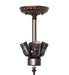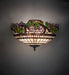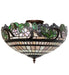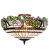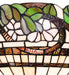 Swirling vines of translucent Plum-Multi art glass surround Jade Green leaves, Pink Blush blossoms, and Amethyst Ice grape clusters that form an irregular edge on this banded Ivory stained glass shade. This Handel & Company reproduction inverted shade is created using the famous Meyda Tiffany copperfoil construction technique and complemented with a Mahogany Bronze finished base. The Handel Grapevine Flushmount is included in our American-designed, handcrafted Stained Glass Lighting Collection. UL and cUL listed for dry and damp locations. Each shade is a unique work of art with color variations based on natural ingredients inherent in the glass. Please feel free to contact us if color matching is critical when ordering multiple items.