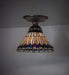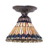 As distinctive as beautiful Peacock fanning feathers in the wild, no two shades will ever be the same as their individuality can be as remarkably unique as their personality. This artistic creation utilizes swirling opalescent stained glass background combinations, including Beige, Yellow Pinks, Golden Greens, Ivories, Bluish Whites, Turquoise Blues, and Olive and Spring Greens. The eye of the plumage design reveals purple, Pastel Blues, Teals, Cobalt, and ivory, accented with Blue and Purple colored jewels. Individual pieces of glass are hand-cut and wrapped using the famous Meyda Tiffany copperfoil construction technique. The ceiling fixture is enhanced with elegant cast metal hardware hand-finished in Mahogany Bronze. To create a dramatic design statement, install this flushmount in hallways, dining areas and other spaces in residential, commercial, and hospitality settings from Savannah, Georgia, to Montgomery, Alabama, to Huntington Beach, California. The Tiffany Jeweled Peacock Flushmount is included in our American-designed, handcrafted Tiffany Reproduction Collection. UL and cUL listed for dry and damp locations. Each shade is a unique work of art with color variations based on natural ingredients inherent in the glass.