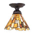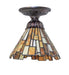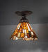 A stunning ceiling fixture features thinly carved and polished natural Jadestone in earthy tones of Moss Green, Tan, Ivory, and Coral that become luminescent in this unique, tile-patterned shade. The stone shade is crafted using the same famous Meyda copperfoil process used to create Tiffany-style stained glass shades. The fixture is enhanced with a Mahogany Bronze finish. This ceiling fixture is an excellent fit in dining areas, living spaces, and corridors in residential, hospitality, and commercial settings. Inspired by locations where the Jade gemstone is mined, from Wyoming, to California, to Alaska. The Delta Jadestone Flushmount is featured in our American-made, handcrafted Jadestone Collection. The fixture is UL and cUL listed for dry and damp locations. Each shade is a unique work of art with color variations based on natural ingredients inherent in the Jadestone.