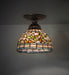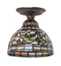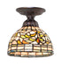 Subtle-toned Autumn Gold, Russet, and Moss Green leaves swirl against an Amber Mauve background in this Tiffany Studio stained glass reproduction. The shade is enhanced with bands of Purple, Blue, and Green and created using the famous Meyda Tiffany copperfoil construction process. This ceiling fixture is complemented with ornate cast hardware and a Mahogany Bronze finish. This stunning lighting design is inspired by natural foliage from the Bridger-Teton National Forest in Wyoming, the Beaverhead-Deerlodge National Forest in Montana, and the Salmon-Challis National Forest in Idaho. The fixture is perfect for hallways and dining spaces in residential and hospitality locations. The Tiffany Turning Leaf Flushmount is featured in our American-designed, handcrafted Tiffany Reproduction Stained Glass Lighting Collection. UL and cUL listed for dry and damp locations. Each shade is a unique work of art with color variations based on natural ingredients inherent in the glass.