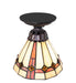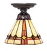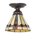 Belvidere features a conical-shaped stained glass shade. The Beige Stained Glass shade is created using the famous Meyda Tiffany copperfoil construction with Purple and Sunburst trim and Amber jewels. The elegant cast metal hardware is hand-finished in a warm Mahogany Bronze hue. The fixture is ideal for placement in hallways and dining areas in homes from Springfield, Massachusetts, to Cape May, New Jersey, to Fort Worth, Texas. The Belvidere Wall Sconce is included in our American-designed, handcrafted Stained Glass Lighting Collection. UL and cUL listed for dry and damp locations. Each shade is a unique work of art with color variations based on natural ingredients inherent in the glass.