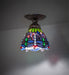 This beloved lighting design is modeled after the original Hanginghead dragonfly from Tiffany Studios. Diving Blue Dragonflies with glowing jeweled eyes and delicate metal filigree wings circle over hand-cut and copper foiled pieces of Lakeside Blue and Pond Green glass representing rippling water. This lovely shade is created using the famous Meyda Tiffany copperfoil construction and enhanced with a Mahogany Bronze finished cast metal hardware. The fixture is inspired by Dragonflies that inhabit renowned rose gardens in the New York Botanical Garden in Bronx Park, New York City, to the White House in Washington, D.C. It is ideal for placement in hallways and dining areas to create a beautiful design statement. The Tiffany Hanginghead Dragonfly Flushmount is included in our American-designed, handcrafted Tiffany Reproduction Collection. The luminaire is UL and cUL listed for dry and damp locations.