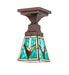Stunning patterns and colors of Native American blankets and pottery have inspired this Mission-style ceiling fixture, which features a stained glass shade, created using the famous Meyda Tiffany copperfoil construction technique. The intricately styled shade offers Bark Brown, Sand Beige, and Turquoise glass with an arrowhead design. This fixture fits well in closets and foyers in fine homes and restaurants from Fort Collins, Colorado, to Pasadena, Texas, to Salinas, California. The Valencia Mission Flushmount is included in our American-designed, handcrafted Stained Glass Lighting Collection. The pendant is UL and cUL listed for dry and damp locations. Each shade is a unique work of art with color variations based on natural ingredients inherent in the glass.