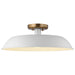 Designed with neutral, clean lines, the Colony medium semi-flush is ideal for an eat-in kitchen, entryway, hallway, and even a bedroom. The loft-style shallow pan metal shade is done in matte white, with a matching interior to reflect the downfacing lamp. The burnished brass finish on the canopy adds an elegant touch to this flexible design.
