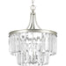 Glimmer fits the definition of livable luxury with elements that sparkle to create an instant statement within the home. Prismatic glass three-light pendants are supported by an architecturally- styled frame in Silver Ridge finish. The cascade of faceted linear glass deliver a sleek silhouette to any room. This versatile 19" round fixture can also be mounted as a semi-flush.