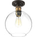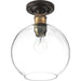 The Hansford collection of fixtures feature a clear, spherical shade paired with vintage style metal fittings in an antique bronze and brass combination finish. Featuring a clean and precise design with generous scale, Hansford's classic style brings tranquility to your home with. Hansford lends itself to Farmhouse, Coastal or Industrial interiors. Can be used with clear or vintage bulbs for a variety of looks. The one-light flush mount is ideal for bedrooms, bathrooms, hallways and closets.