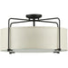 Overcome design paralysis with the uncomplicated classic Kempsey three-light, semi-flush convertible. Antique Bronze arms capture a textured Harvest Linen shade for an aesthetically-pleasing design. The minimalist design is fitting for illuminating an often-used dining table or kitchen island in a transitional or farmhouse interior.