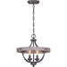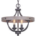 The four-light semi-flush fixture that can also convert to a hanging fixture in the Gulliver Collection features arching and delicate details that curve to create an airy design. Dual toned frame color combinations in a Graphite finish with weathered oak accents The hand painted wood grained texture complements Rustic and Modern Farmhouse home decor, as well as Urban Industrial and Coastal interior settings.