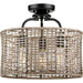 Gather under the organic glow of the Lavelle Collection 3-Light Natural Rattan Textured Black Global Semi-Flush Mount Convertible Ceiling Light. Light sources glow from between the openings of a natural rattan shade that creates an earthy design sure to add an organic touch to the living space it calls home. The smooth, stem, curved arms, and rounded light bases are coated in a textured black finish that complements the shade and adds a pinch of industrial character.