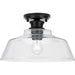The Singleton Collection 1-light semi-flush mount fixture pays homage to industrial styling with an oversized warehouse shade fabricated from clear glass. A round backplate and vintage-inspired metal fittings finished in classic matte black create a timeless design. The warehouse-style glass shade is the perfect showcase for clear decorative light bulbs (not included) to enhance the fixture's charming style. This beautiful ceiling light delivers optimal ambient lighting for bathrooms, bedrooms, hallways and foyers.