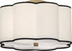 Aged Brass Finish Axis Flushmount With Scalloped Fondine Fabric Shade with Contrasting Trim - Axis features a scalloped design that diffuses the light in a most inviting way and also adds an elegant touch that is subtle and charming.