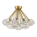 18-Lighting 24" Cluster Crystal Semi-Flush Mount with Heavy Gauge Faceted Crystal Shades on Aged Brass Finished Metal Stems with Canopy.