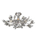 4-Light 22" Organic Semi-Flush Mount with Branch Like Arms Finished with Clear Almond Shaped Leaf Style Crystals and Silver Leaf Metal Finish.