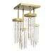 4-Light 18" Designer Cityscape Semi-Flush Mount with Multi-Sized Clear Curved Crystal Stems combined with Solid Metal Stems. Refined Metal Details with our Premium Aged Brass Finish.