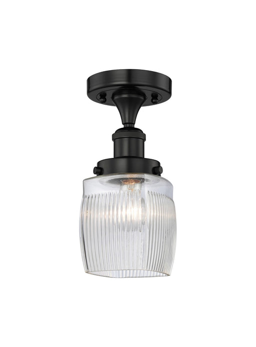 Colton - 1 Light - 6 inch - Matte Black - Clear Halophane Shade - Semi-Flush MountDetails:Product Type: Glass DownFinish: Matte BlackShade: Thick C...